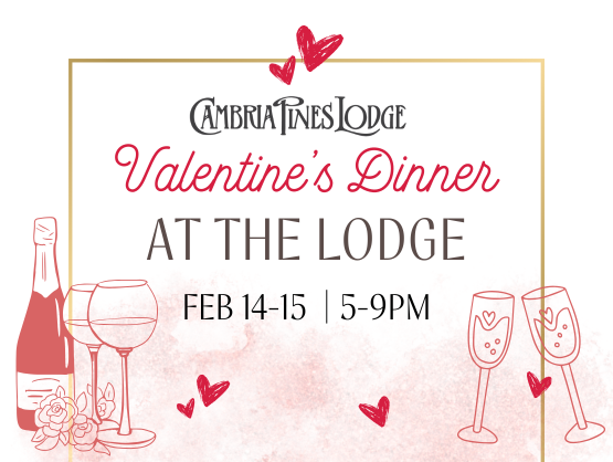 Ring in Valentine’s Day with your special someone at Cambria Pines Lodge. Savor romance with a delicious meal from a special menu, featuring grilled lamb rack, slow-roasted prime rib, pan-seared sole fish stuffed with crab meat, and for dessert, chocolate-covered strawberries. Plus, each couple will add a little extra love to their night when they receive a complimentary rose.
