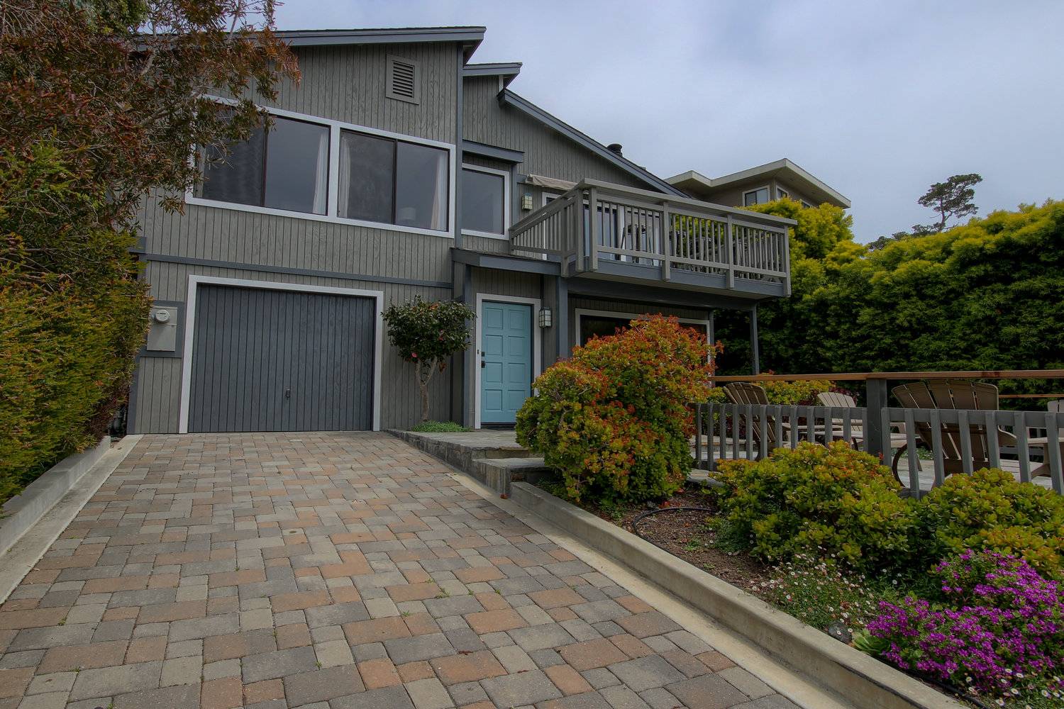 Enjoy gorgeous ocean views, Wi-Fi, a wood-burning fireplace, two TVs with DVD players, a BBQ, and front and back decks. Your dog is welcome, too! On the ground level is a one-car garage, a bedroom with a queen bed, and a den with a queen sofa sleeper, a TV and DVD player, and a small fridge, microwave, and coffeemaker. Upstairs has two bedrooms and baths, kitchen, deck in front, and enclosed patio in back with BBQ and lounging furniture. The kitchen is perfect for preparing fine meals on the five-burner stove, with a convection and warming oven, and plenty of prep space.